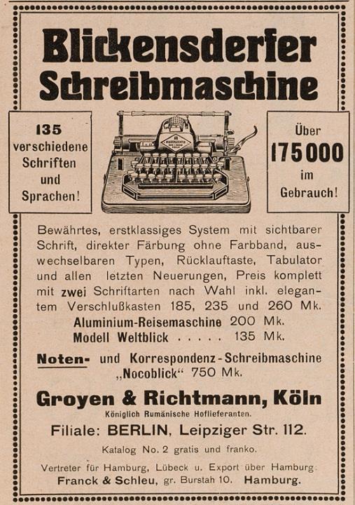 Blickensderfer Schreibmaschine. Über 175000 im Gebrauch
