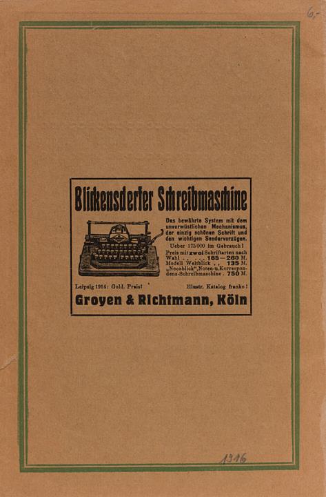 Zeitschriftenumschlag (Hochland) mit Werbeanzeige für Schreibmaschine Blickensderfer monochrom
