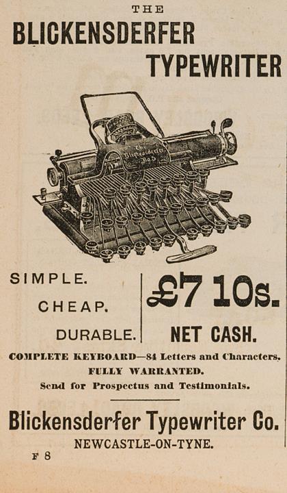 Zeitungsblatt mit Werbeanzeige für Schreibmaschine Blickensderfer 5 monochrom