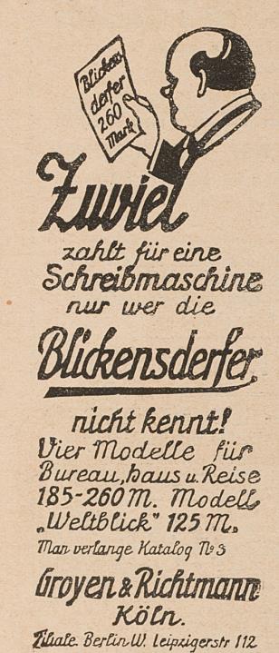 Zuviel zahlt für eine Schreibmaschine nur wer die Blickensderfer nicht kennt