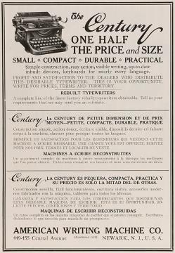 Zeitungsblatt mit Werbeanzeige für Schreibmaschine Century monochrom