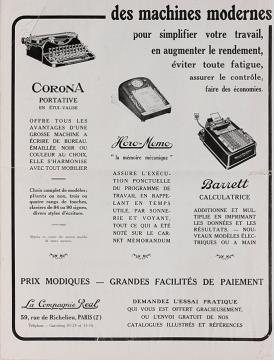 des machines modernes [...] Corona, Horo-Memo, Barrett
