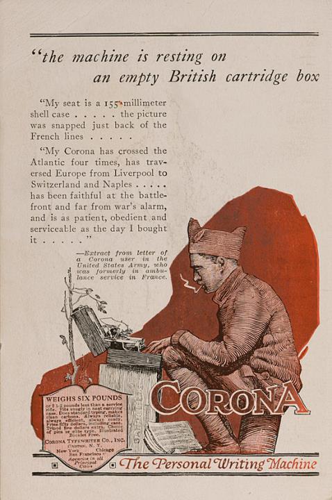 Zeitschriftenumschlag (The World Almanac) mit Werbeanzeige für Schreibmaschine Corona polychrom