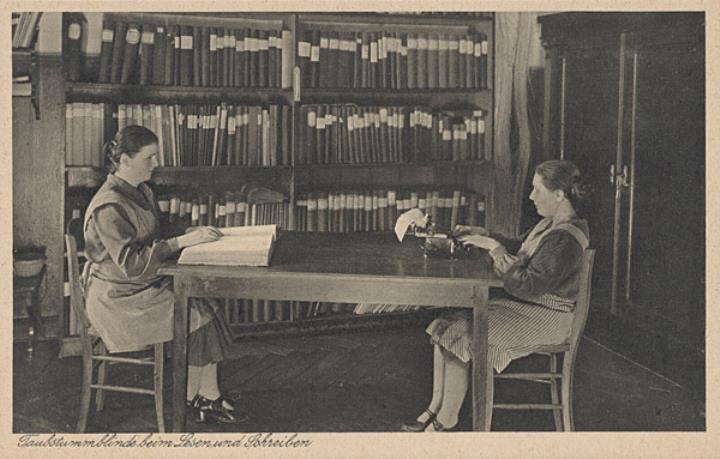Taubstummblinde beim Lesen und Schreiben