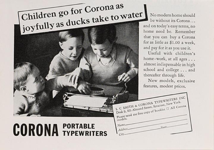 Werbeanzeige für Schreibmaschine Corona monochrom