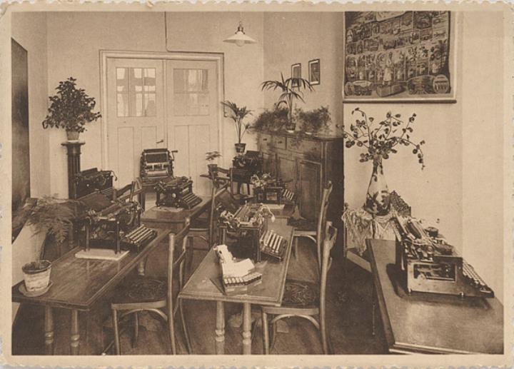 Next to literature on the history of technology, of the typewriter and the office, the Archive holds patent letters, textbooks and instruction manuals as well as historical postcards, letters, photographs and various kinds of advertising (leaflets and brochures, advertising stamps, newspaper ads, posters and signs, promotional gifts).