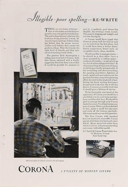 Werbeanzeige für Schreibmaschine Corona monochrom