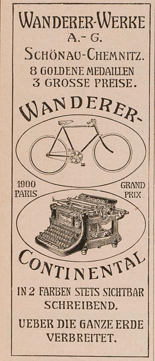 Zeitungsblatt (Fliegende Blätter) mit Werbeanzeige für Fahrrad Wanderer und Schreibmaschine Continental monochrom, drei Exemplare