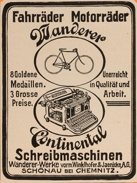Fahrräder Motorräder Wanderer Continental Schreibmaschinen