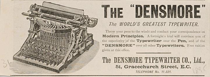 Werbeanzeige für Schreibmaschine Densmore monochrom
