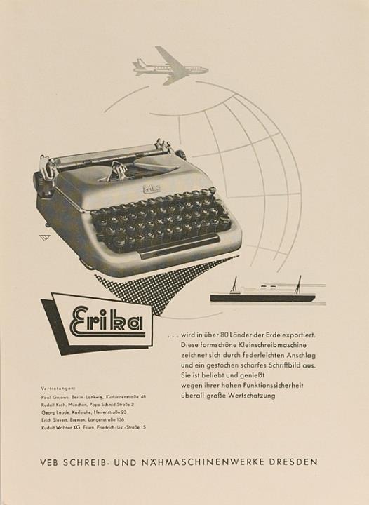 Werbeanzeige für Schreibmaschine Erika monochrom