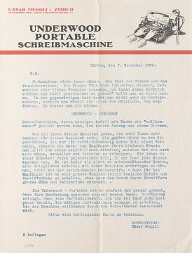 Rundschreiben der Schreibmaschinenhandlung Cäsar Muggli, Zürich datiert 07.11.1922; Maschinenschrift