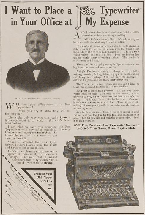 I want to Place a Fox Typewriter in Your Office at My Expense