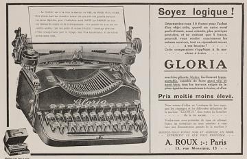 Werbeanzeige für Schreibmaschine Gloria (Erika) monochrom; auf Karton geklebt