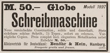 M. 50.- Globe Schreibmaschine Modell 1897
