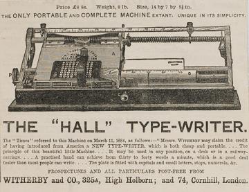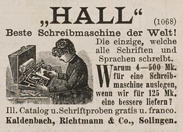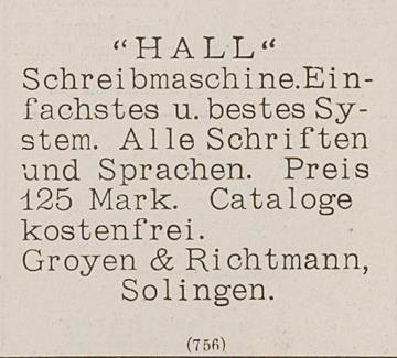 Hall Schreibmaschine. Einfachstes u. bestes System
