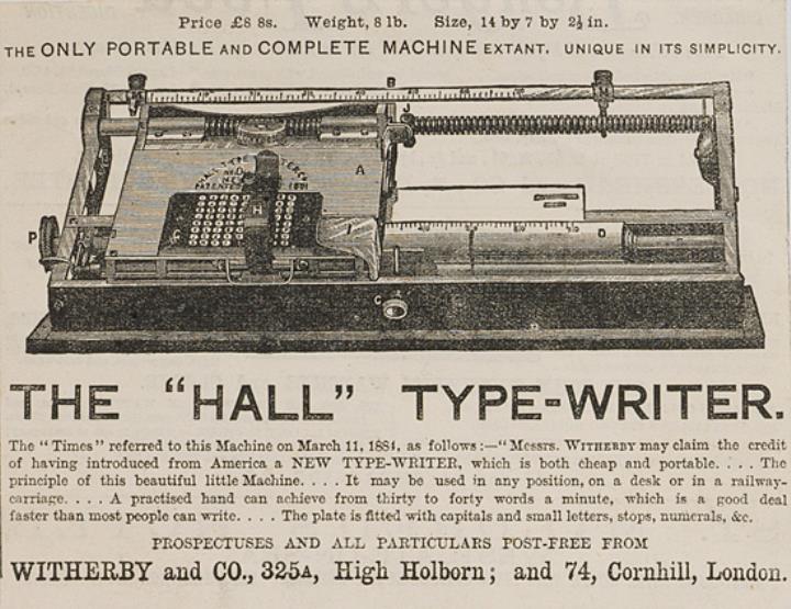 Werbeanzeige für Schreibmaschine Hall monochrom