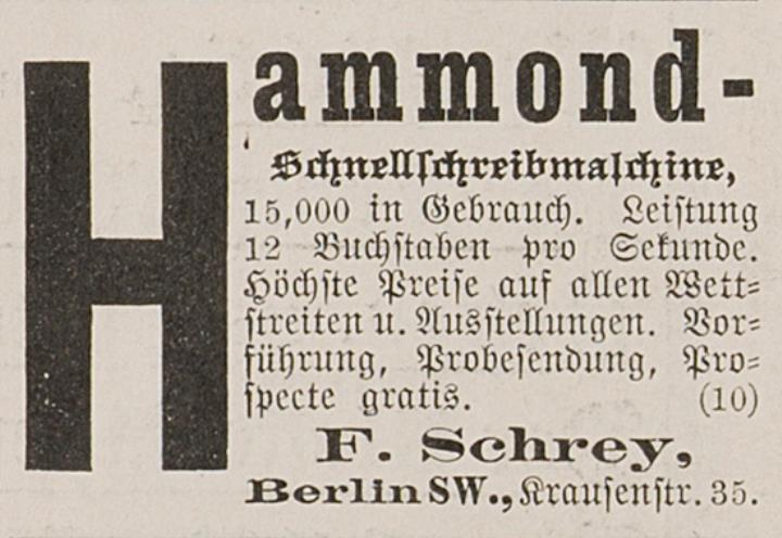 Werbeanzeige für Schreibmaschine Hammond monochrom