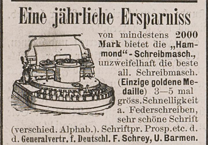 Eine jährliche Ersparniss [...] bietet die Hammond-Schreibmasch.