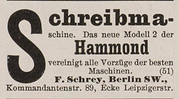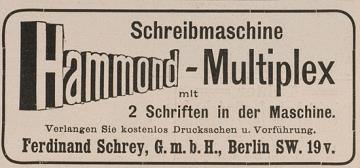 Werbeanzeige für Schreibmaschine Hammond monochrom