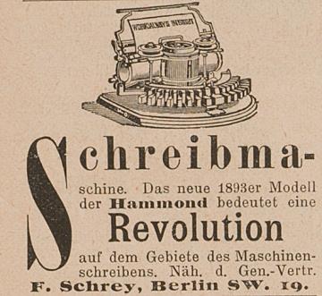Schreibmaschine. Das neue 1893er Modell der Hammond