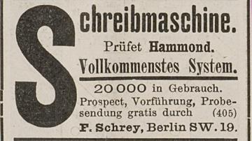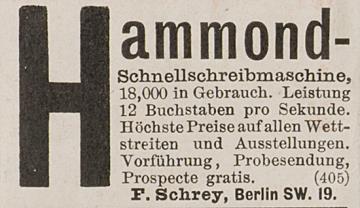 Zeitungsblatt (Illustrirte Zeitung) mit Werbeanzeige für Schreibmaschine Hammond monochrom