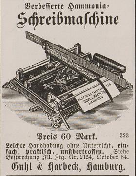 Zeitungsblatt (Illustrirte Zeitung) mit Werbeanzeige für Schreibmaschine Hammonia monochrom