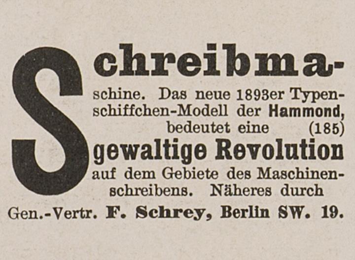 Zeitungsblatt (Illustrirte Zeitung) mit Werbeanzeige für Schreibmaschine Hammond monochrom, drei Exemplare