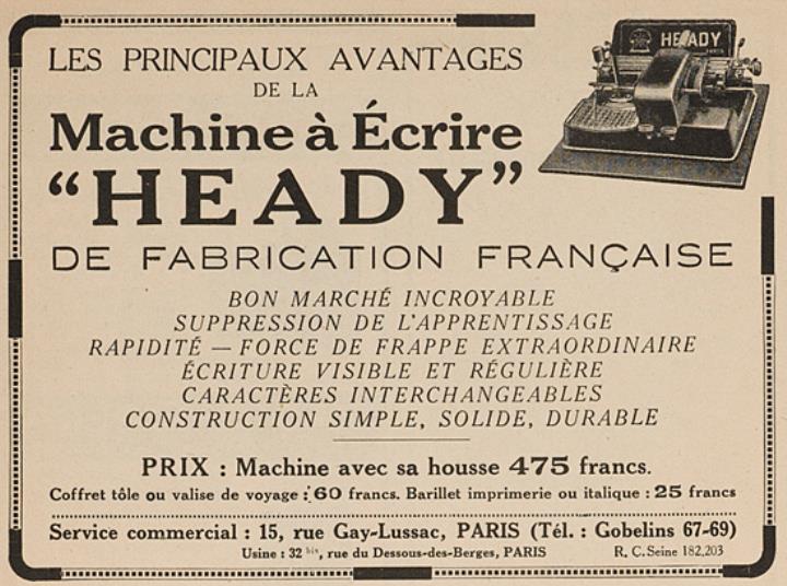 Werbeanzeige für Schreibmaschine Heady monochrom