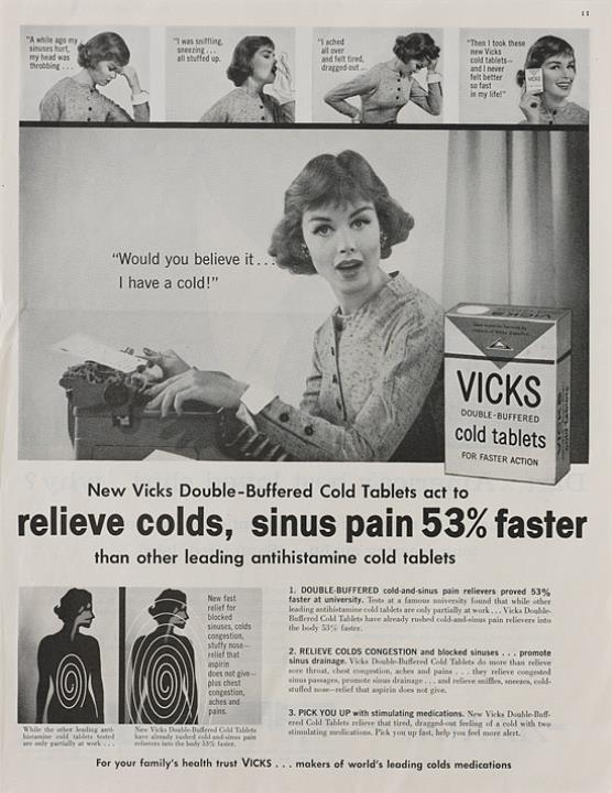 Werbeanzeige für Lutschtabletten Vicks monochrom