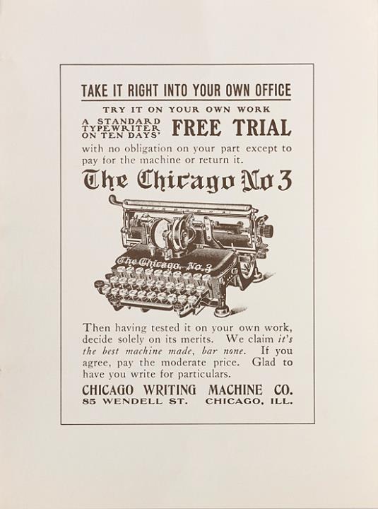 Werbeanzeige für Schreibmaschine Chicago 3 Nachdruck; monochrom