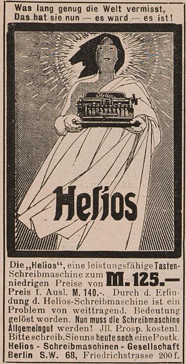 Zeitungsblatt mit Werbeanzeige für Schreibmaschine Helios monochrom
