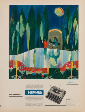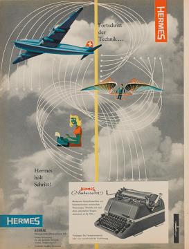 Werbeanzeige für Schreibmaschinen Hermes polychrom