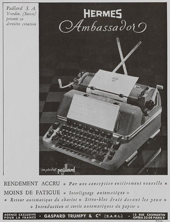 Werbeanzeige für Schreibmaschine Hermes Ambassador monochrom, zwei Exemplare (verschieden gerahmt)