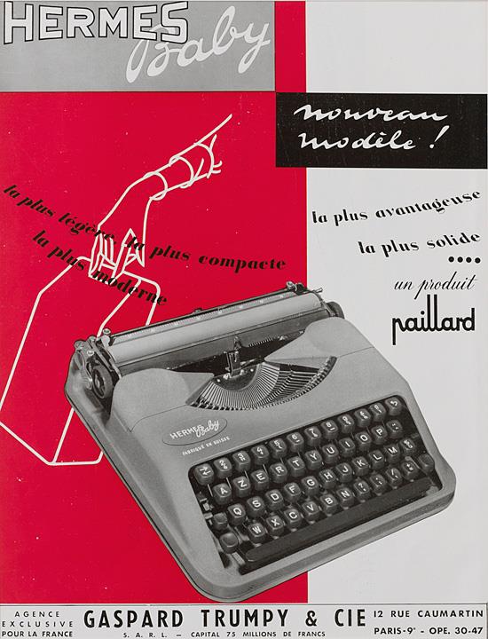 Werbeanzeige für Schreibmaschine Hermes Baby polychrom; mit Passepartout