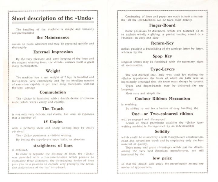 Faltprospekt für Schreibmaschine Unda Grafik: Fritz Schönpflug
