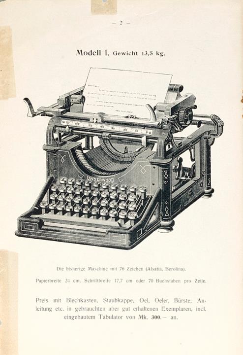 Modelle, Schriftarten, Klaviaturen der Original Underwood Standard-Schreibmaschine