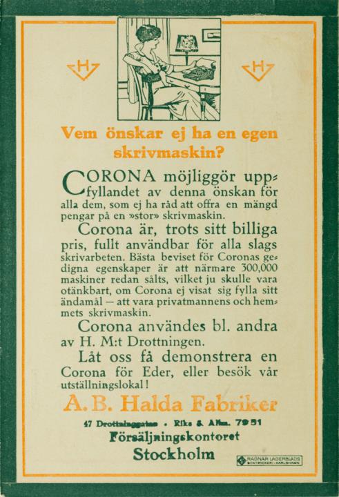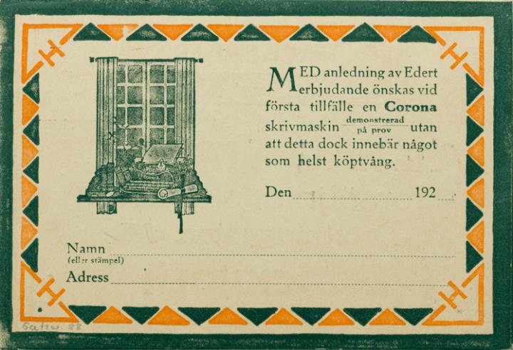 Next to literature on the history of technology, of the typewriter and the office, the Archive holds patent letters, textbooks and instruction manuals as well as historical postcards, letters, photographs and various kinds of advertising (leaflets and brochures, advertising stamps, newspaper ads, posters and signs, promotional gifts).