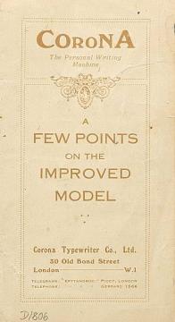 Faltprospekt für Schreibmaschine Corona A few points on the improved model