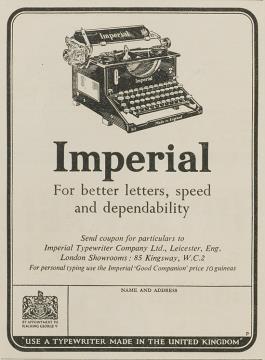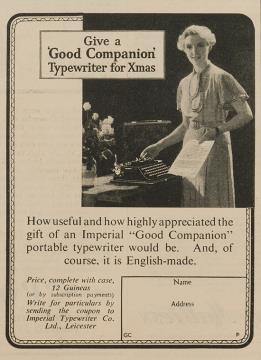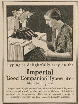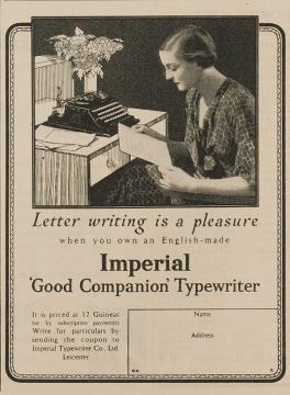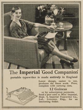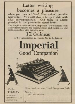 Zeitungsblatt (Punch) mit Werbeanzeige für Schreibmaschine Imperial Good Companion monochrom