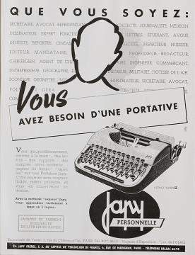 Werbeanzeige für Schreibmaschine Japy monochrom; mit Passepartout