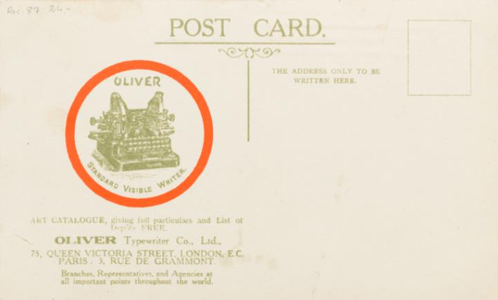 Next to literature on the history of technology, of the typewriter and the office, the Archive holds patent letters, textbooks and instruction manuals as well as historical postcards, letters, photographs and various kinds of advertising (leaflets and brochures, advertising stamps, newspaper ads, posters and signs, promotional gifts).