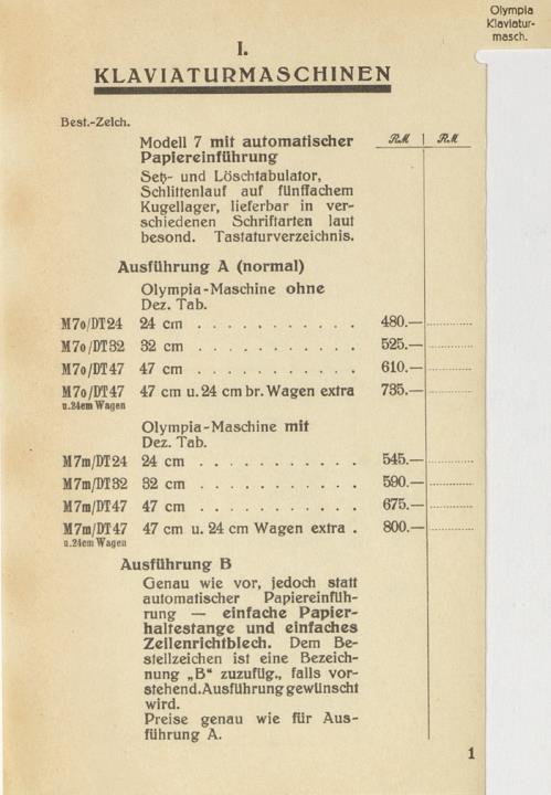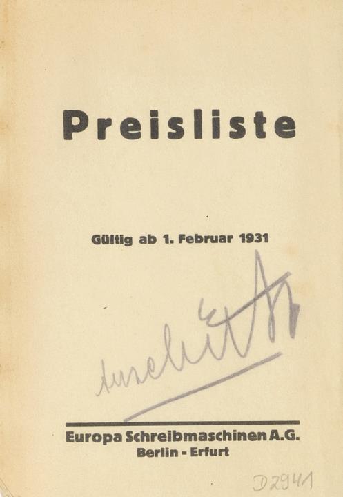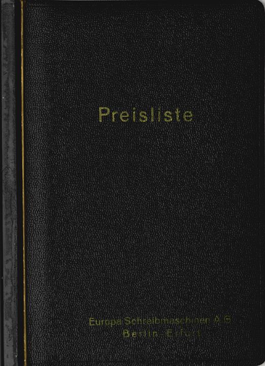 Preisliste für Schreibmaschine, Zubehör und Möbel der Europa Schreibmaschinen AG Berlin-Erfurt; gültig ab 1. Februar 1931