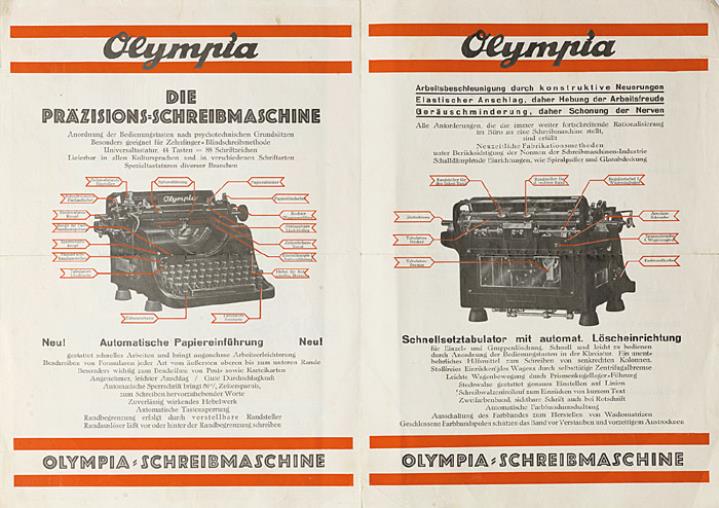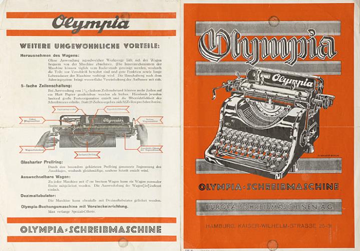 Faltprospekt für Schreibmaschine Olympia Nr. 3740.30