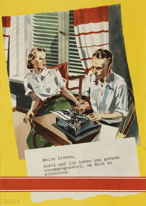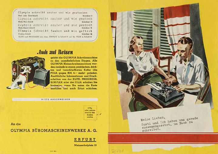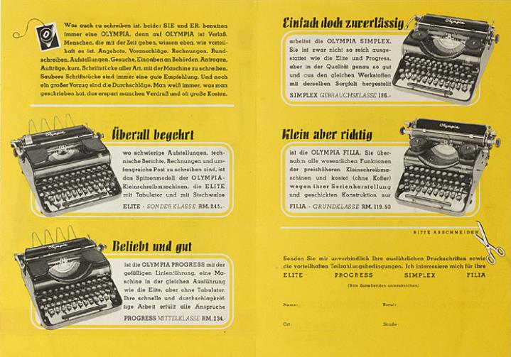 Faltprospekt für Schreibmaschine Olympia Nr. 3211BB1 [...] Gusti und ich haben uns gerade zusammengesetzt, um Euch zu schreiben