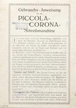 Gebrauchsanweisung für die Piccola Corona-Schreibmaschine