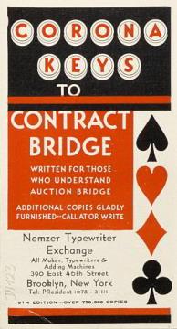 Faltprospekt mit Punkte- und Wettangaben für Bridge und Werbehinweis auf Schreibmaschinen Smith-Corona Nr. AC-103
