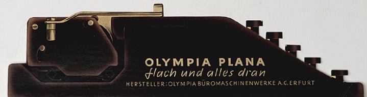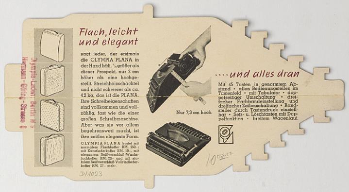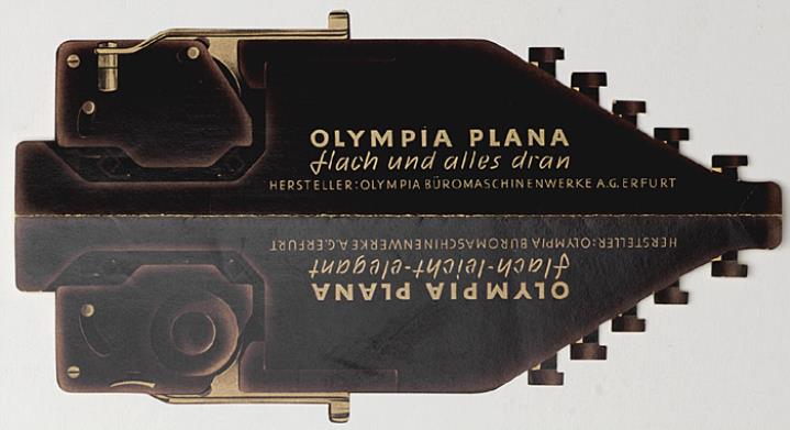 Faltprospekt in Form einer Schreibmaschine im Profil für Schreibmaschine Olympia Plana