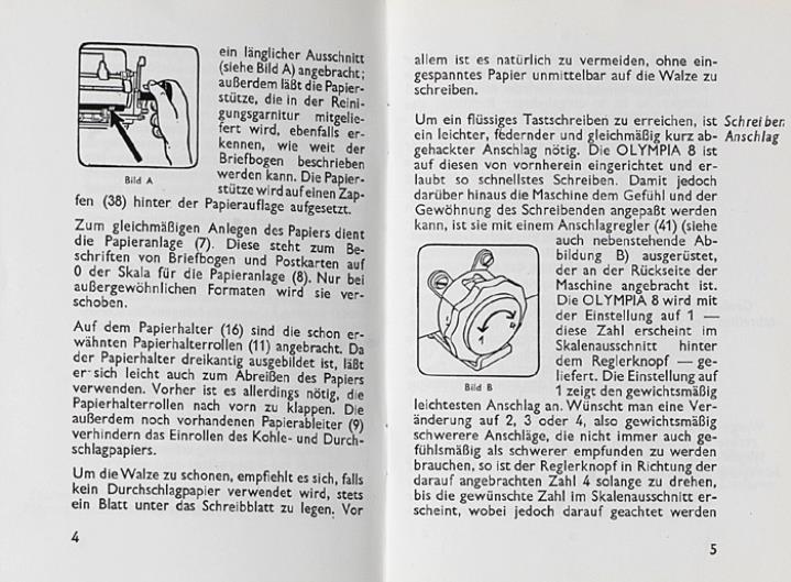 Bedienungsanleitung für Schreibmaschine Olympia 8 Nr. D 290 B 644 Nachdruck