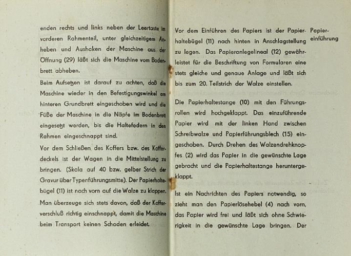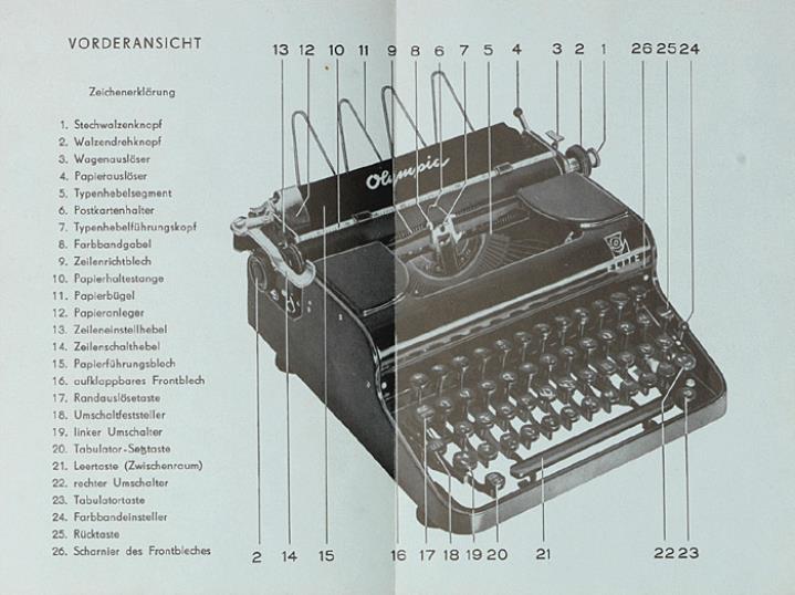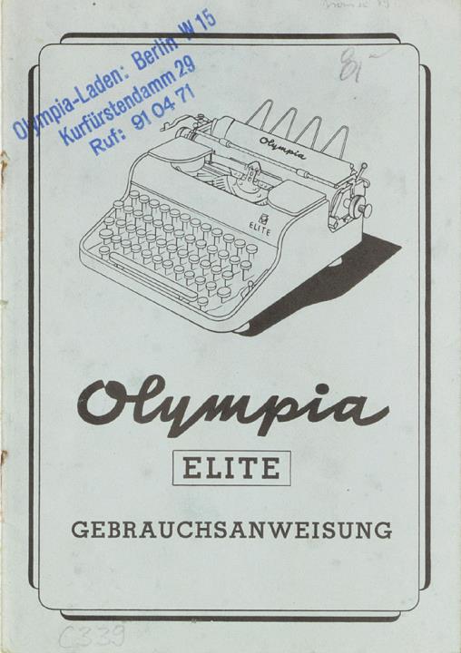 Bedienungsanleitung für Schreibmaschine Olympia Elite Nr. 253/BB 5/2 angebrachter Stempel: Olympia Laden Berlin W 15, Kurfürstendamm 29